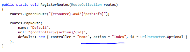 更改App_Start/RouteConfig.cs文件中定义的默认路由,将性能设置为默认操作。
