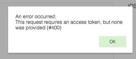 发生了一个错误:此请求需要访问令牌,但没有提供(#400)