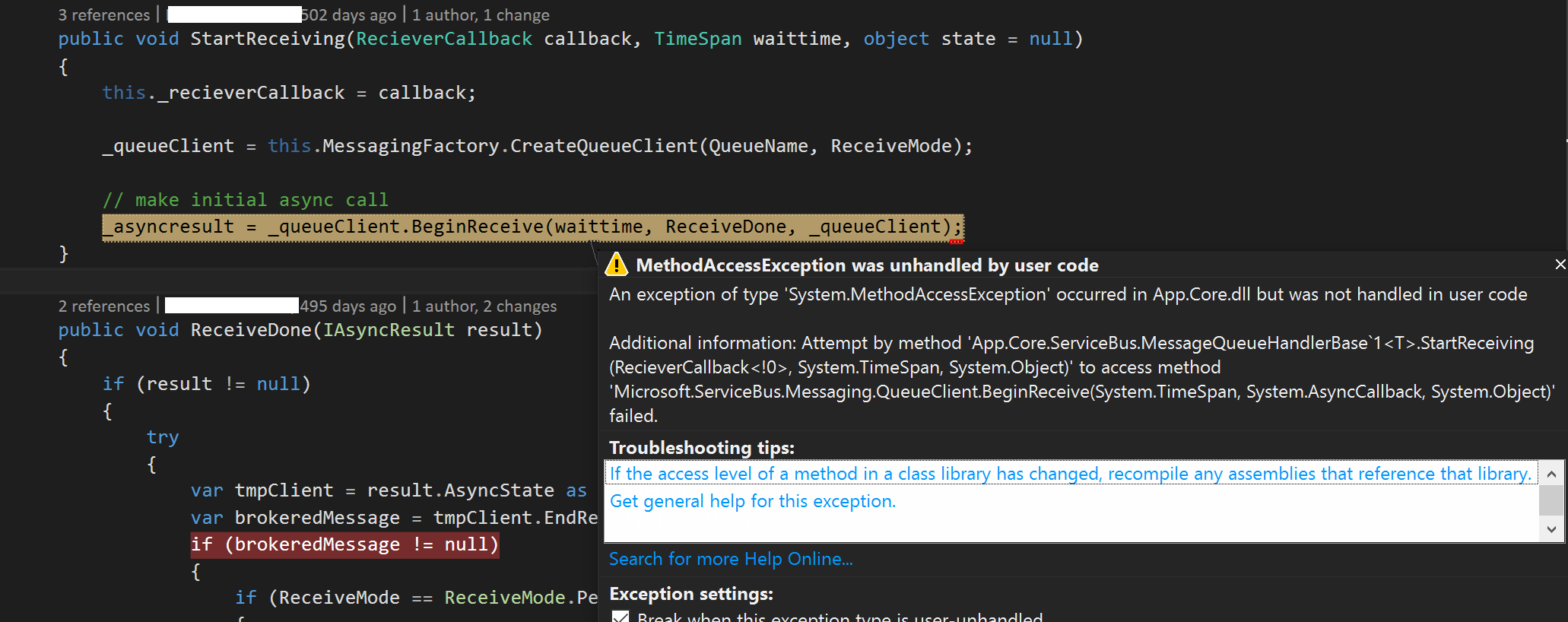 我需要将我们的服务总线nuget包升级到3.2.2 (假设连处理器主机都需要它),但是我始终将服务总线项目库保持在2.8.2。这主要是因为BeginReceive()和EndReceive()看起来已经被删除了。有什么原因或无论如何,我可以很容易地转换这个