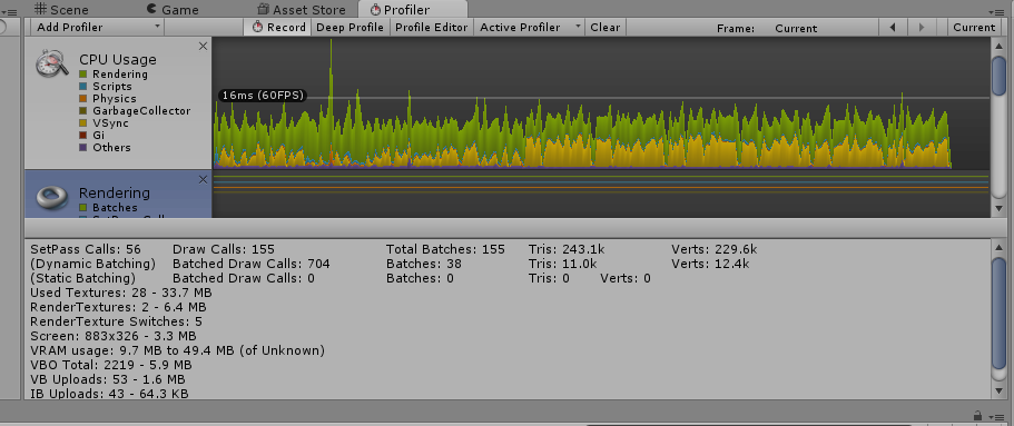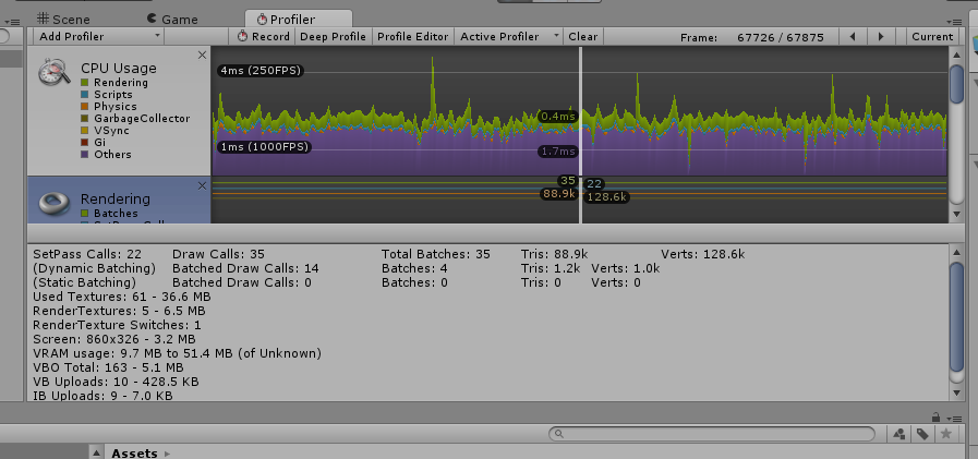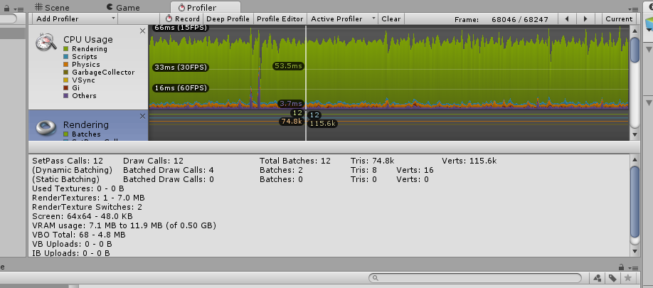 它们是否也可以降低移动构建中的性能?统一编辑器的配置文件窗口状态: