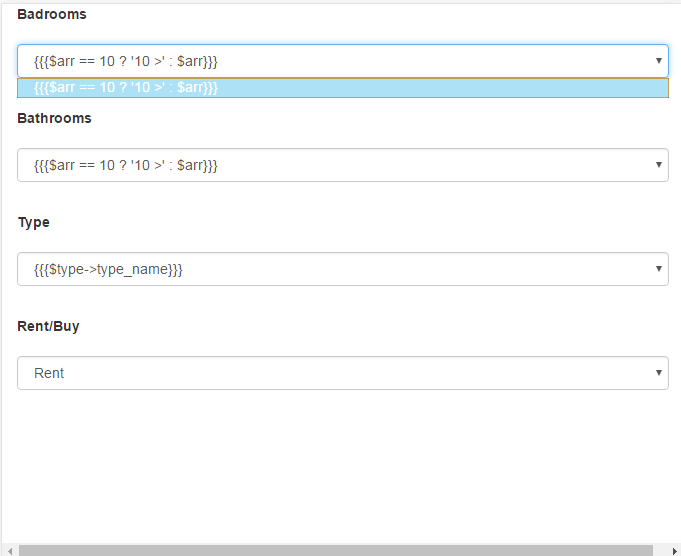 <option value="">{{{$arr == 10 ? '10 >' : $arr}}}</option>