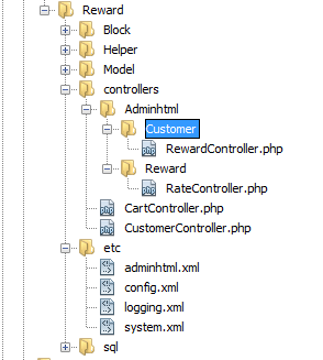并将您的控制器放在“奖励/控制器/Adminhtml”文件夹下。