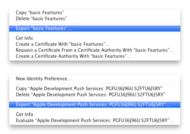 ->现在通过右键单击证书将证书文件和私钥文件分别导出为cert.p12和key.p12。