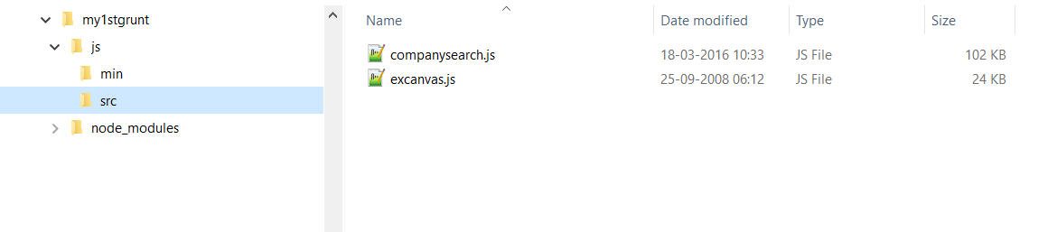 使用下面可以看到的Grunt代码和文件夹结构,当我运行grunt uglify时,结果是输出在\min文件夹中创建子文件夹结构\js\src,其中最深的文件夹(src)将包含缩小的文件。但是我希望在\min文件夹根目录中创建缩小的文件。