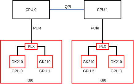 如果每个K80都没有共享相同的PCIe根复合体。然后,允许从GPU0到GPU1的对等访问,但不允许从GPU0到GPU2 2/GPU2 3访问。