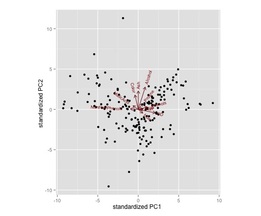 ggbiplot(wine.pca)这应该会给出正确的输出。
