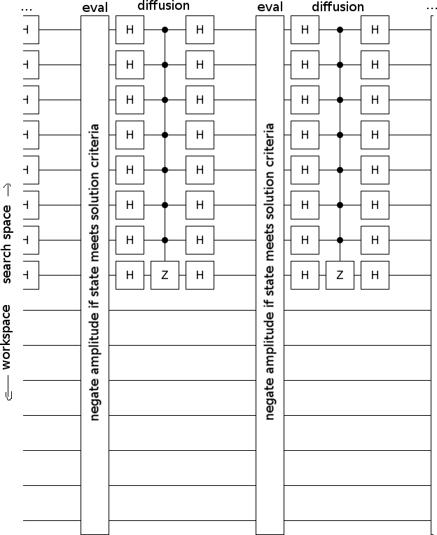 i => isMersennePrime(2**i - 1))注意,蛮力搜索是如何将我们如何识别某物的知识转化为发现某物的机制的。Grover的算法也做了同样的事情,但是二次速度更快,并且必须将识别器实现为可逆电路。