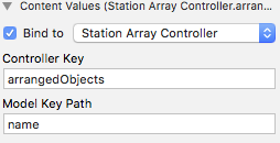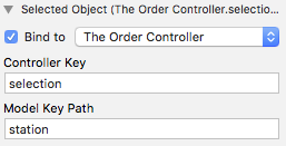 将站点弹出按钮的选定对象绑定到Order对象控制器、Controller键selection、模型密钥路径station。