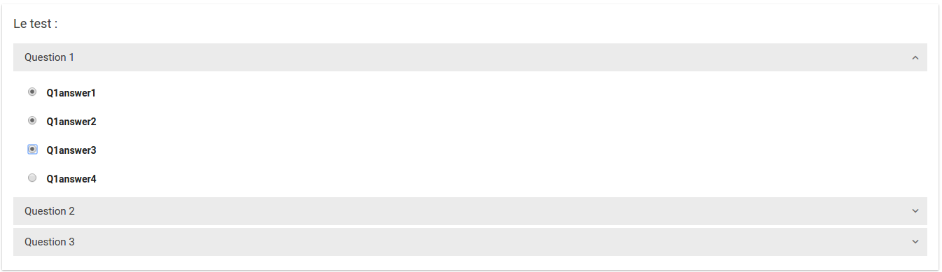 </div> </div>如果listQuestion是每个问题实体都有一个wording和一个命题列表(lpo)的问题实体列表,那么我就不能为每个问题只检查一个单选按钮,如下所示: