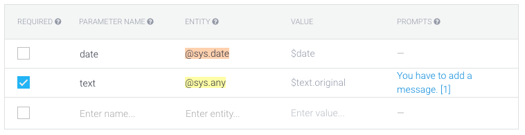 例如,如果我编写"bla google.com“,其中"google.com”映射到一个参数,则该参数的值为“google.com”,我找不到如何解决这个问题。我还写信给api.ai团队,目前还没有答复。