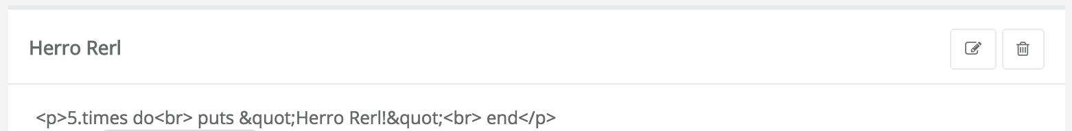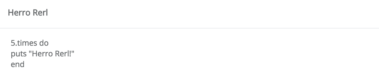 => "5.times do\r\n puts \"Herro Rerl!\"\r\nend"