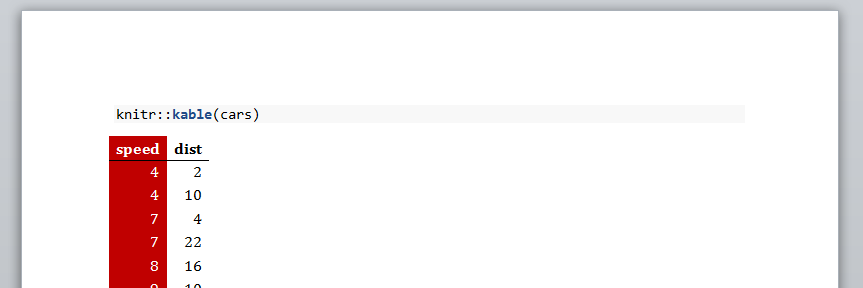 这本质上是TableNormal、这篇文章发表在rmarkdown.rstudio.com上和我自己的实验的结合,展示了如何使用TableNormal样式自定义表,比如由kable生成的表: