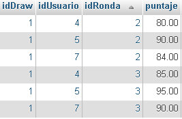 用户:4- idRonda: 2- puntaje: 80 用户4:- idROnda: 3-朋塔耶: 85