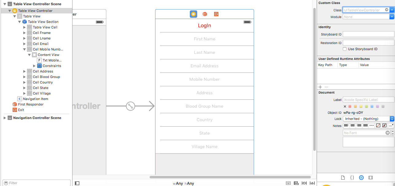 请检查“屏幕快照”如何在UITableViewController中添加任何控件,不要忘记更改tableView属性中的静态单元格而不是动态原型。