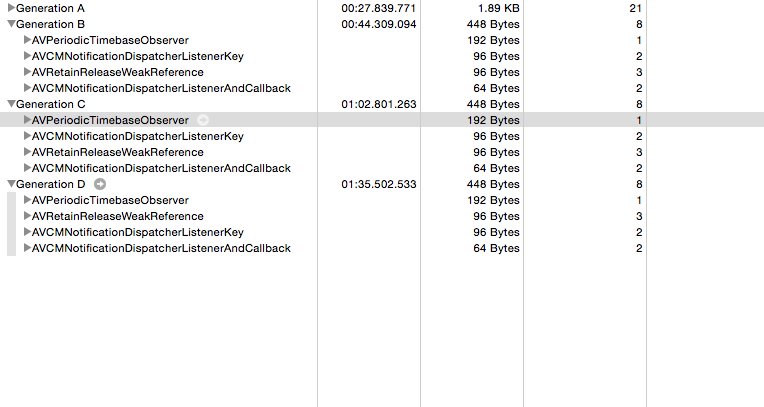 每次我弹出视图控制器(显示视频)时,都会有一些与AVFoundation相关的对象保存内存。有趣的是,所有这些对象的负责任库是AVFoundation。内存的增加不是由于应用程序中创建的对象造成的。这种流行的框架不太可能有问题。我在网上看到了一些AVPlayerViewController的例子,但它们似乎也有同样的问题。