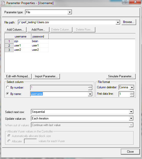 假设我有Payee.csv文件,其中有28列数据,csv文件位于某些共享位置。在脚本中,我需要通过importing.How传递csv文件中的值,我可以在Vugen脚本中这样做吗?