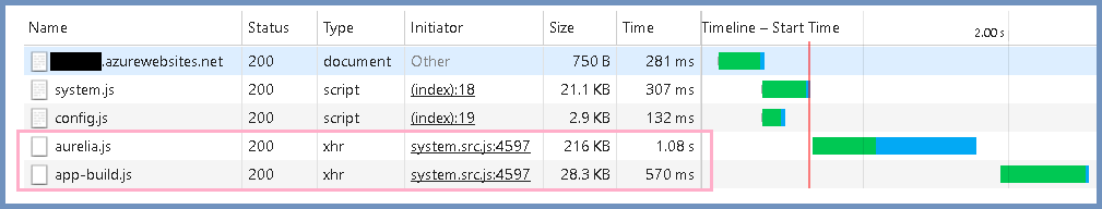 我们使用SystemJS加载两个包:aurelia.js和app-build.js。SystemJ正在一个接一个地加载它们。我们如何让SystemJ同时加载它们?