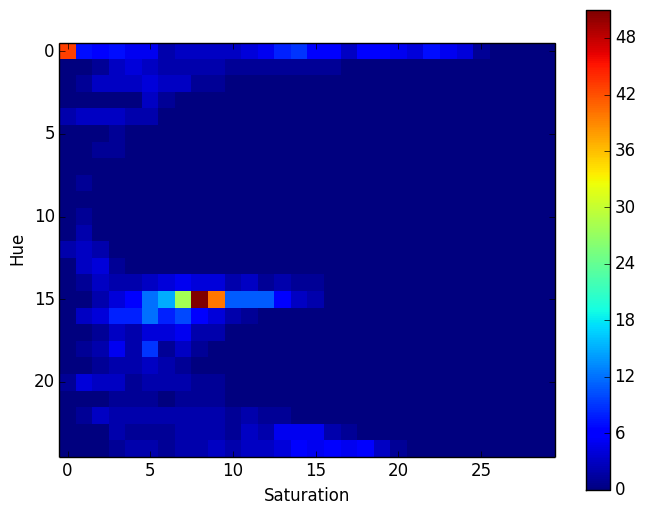 我有以下的色调/饱和度二维直方图。有两件事我喜欢改变,但不知道如何改变。