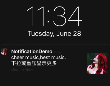 }UNNotificationContentExtension视图控制器。(在iOS10 Beta1中,它不能工作。但是现在这个工作没有3d触摸)还有..。如果您只想在显示在锁定屏幕上的推送通知上显示图像,则需要添加UNNotificationAttachment。