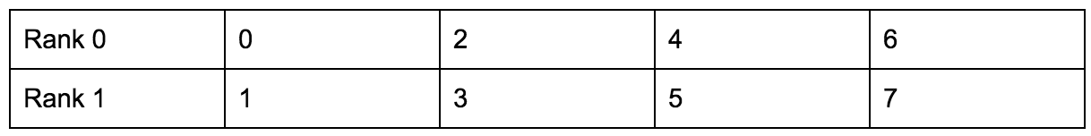 以上代码在计数方面是不正确的。除非您正在处理派生类型,否则sendcount和recvcount应该是相同的(在本例中是4)。然而,这将导致顺序:0 2 4 6 1 3 5 7,即这两条消息一个接一个地收到。