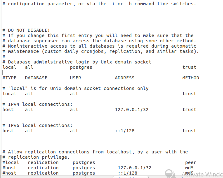 这是我的pg_hba.conf文件,按照安装指令中指定的配置-