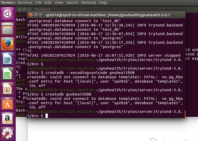我已经按照GNU健康网站上的指示安装了Tryton服务器和客户端。服务器运行正常。所需的先决条件- Postgresql,Python已经提前安装.我已经创建了一个GNU Health用户,但是每当我尝试在postgres中创建一个数据库时,我都会得到下面的终端中显示的错误-