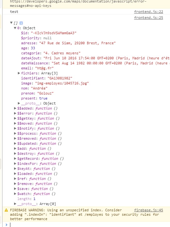 我的愿望只是在$scope.employe中填充一个对象,这个对象拥有我从firebase获得的$id -KIcVJh9sdVSWMamGaA3,但是我真的不知道该如何做。