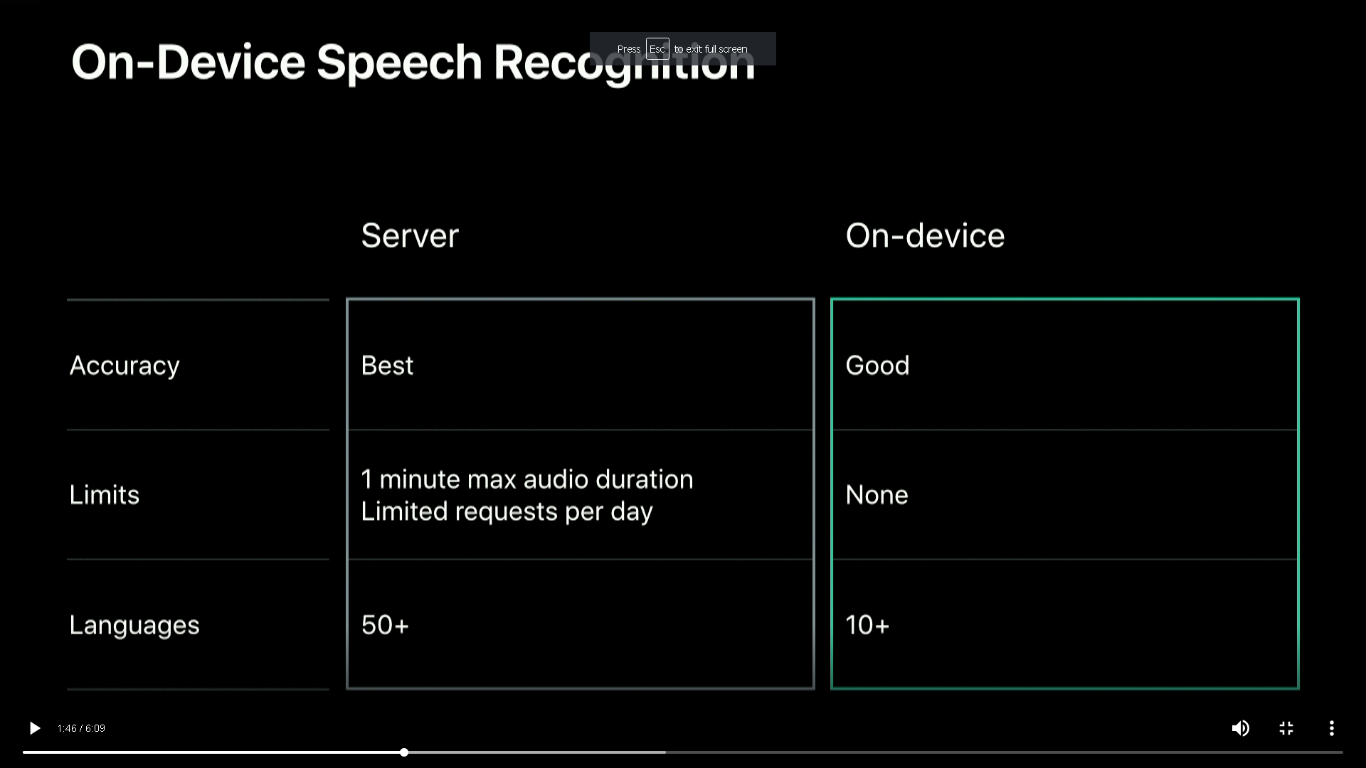 然而,SFSpeechRecognizer文档 (镜像)说: