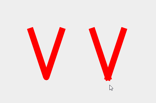 这种区别主要表现在将一个“非平凡”的Stroke分配给图形对象时-通常是一个特定的BasicStroke。这将在构造函数中接收多个参数。关于您的问题,最重要的是join参数。它可以是JOIN_BEVEL,JOIN_METER和JOIN_ROUND。它决定了两个连接的线是如何连接的。显然,只有当已知线路是连接的时才能应用这一点,这只是drawPolyline调用中的情况。它根本不能应用于单个drawLine调用。