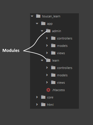 因此,我将public_html从应用程序逻辑中分离出来,在/ app /文件夹中指定了两个文件夹,默认的“学习模块”和“管理模块”,因此目录树如下所示: