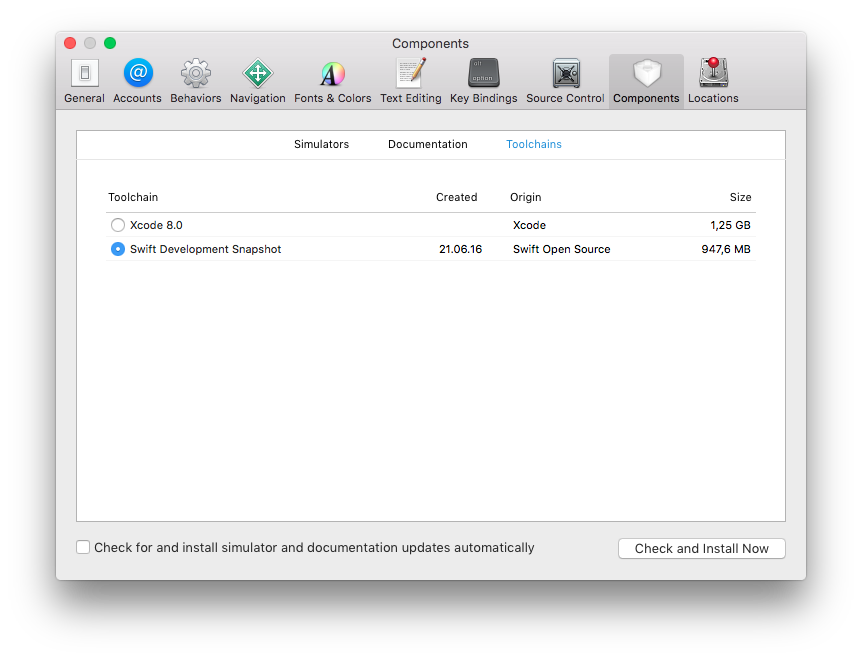 在撰写本文时,Kitura只使用06-06 Swift开发工具链进行编译,因此请确保安装了该工具。