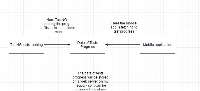 为了实现这个目标(从我所学到的计划中,其他人可能可以为我指明一个更好的方向),我计划找到一种方法在way服务器上托管结果,然后移动应用程序可以访问这些结果,并将这些结果转换成在移动应用程序的前端可以看到的东西。使用这种方法,时间库可能不是100%,因为从TestNG到服务器到移动应用程序的结果需要花费的时间,但是一旦它在合理的范围内就可以了。