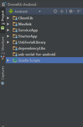 我有两个android项目:塔塔和dronekit android。我试图同时将两个项目导入Android。所以我首先导入Tower,然后在项目设置窗口中导入dronekit android。(使用文件->项目结构-> +)