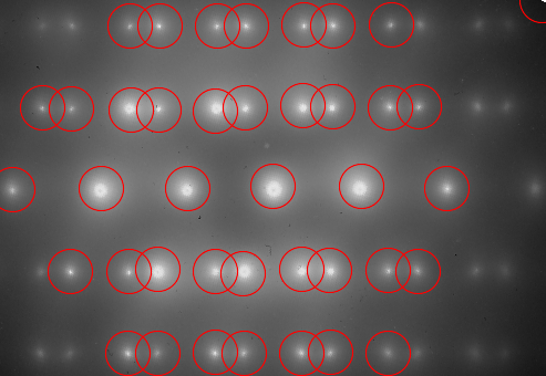 -r 20忽略了在半径为20像素范围内的所有峰值,-n 40表示您想要找到40个峰值。在输出中,您可以看到峰值的坐标和它们的亮度。