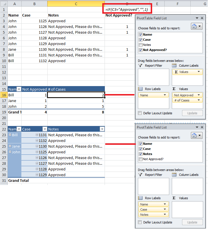 我已经为所有三个字段指定了范围,这些字段用于提取数字的结果,但现在我正在寻找一种方法来抓取每个案例,并将它们放入透视图单元格中,如最后一幅图像所示。我不介意使用VBA来实现这个甚至公式,如果可能的话,我已经完成了所有的事情,只是无法解决这个问题。