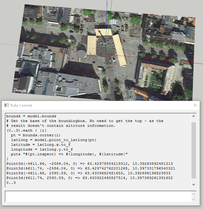 通过它的声音,您可能会发现Sketchup::Model.point_to_latlong有用。