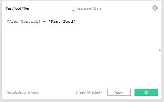 计算应该匹配数据源(快餐店的“快餐店”,等等)。
