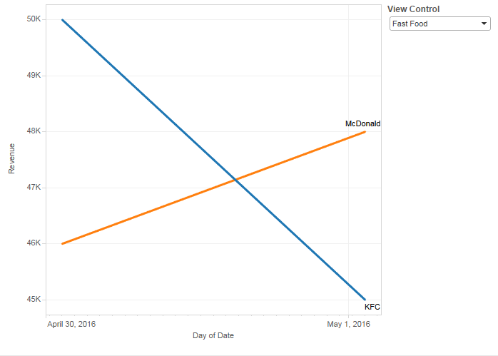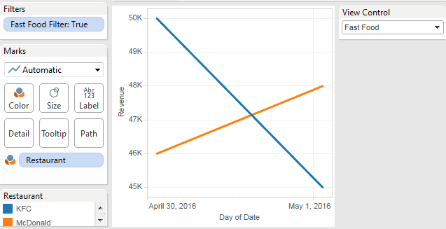 到目前为止,我已经能够使用这篇有用的文章http://kb.tableau.com/articles/knowledgebase/multiple-sources-one-worksheet显示快餐和百货商店的要求。但是如果用户点击快餐店,他只会得到一条线,而不是多条线(每家餐厅一条)。