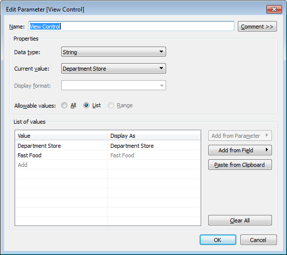 您可以很容易地使用参数控件并将其用作工作表中的筛选器。