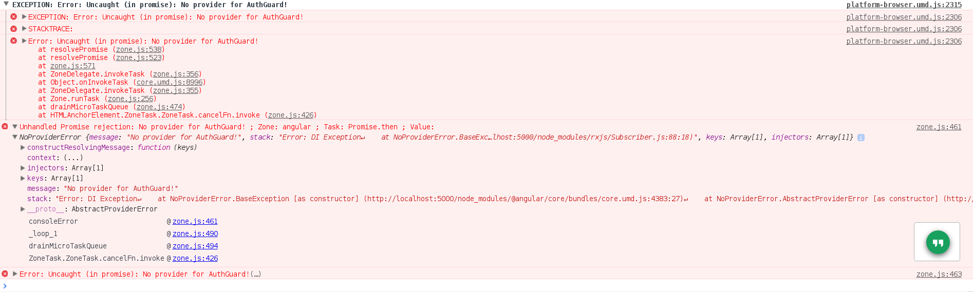 }当我试图访问"/admin“(AdminDashboardComponent)时,会得到以下错误: