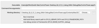 DYLD_LIBRARY_PATH编辑:解决此问题的另一种方法(这进一步证明这仅与Qt相关)是转到Projects -> Run -> "Run“(显示详细信息),选择并单击Unset。在此之后,您的项目应该按预期编译。