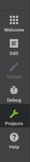 在中,窗口左侧有一个工具栏。欢迎,编辑,设计等。其中一个选择是项目。选择那个选项卡。