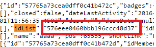 这是一个非常简单的代码,我不知道我的代码有什么问题。我相信idList值是正确的,我在目标列表中创建了一张卡片,并键入.json来检查idList,结果是: