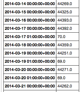 然后,我从MongoDB中读取这些数据,并使用它创建一个熊猫DatetimeIndex。