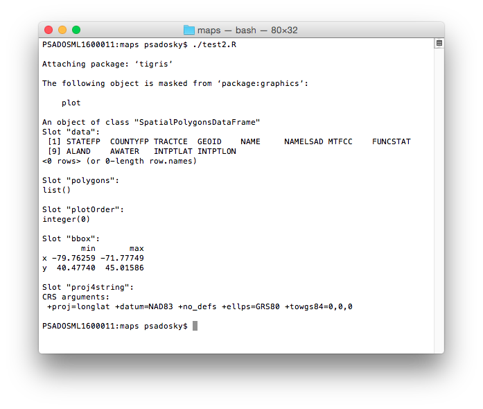 print(shp)我可以从控制台完美地运行这段代码,但是当我试图从终端(OSX10.10.5)运行它时,我可以在下面看到空的SpatialPolygons对象: