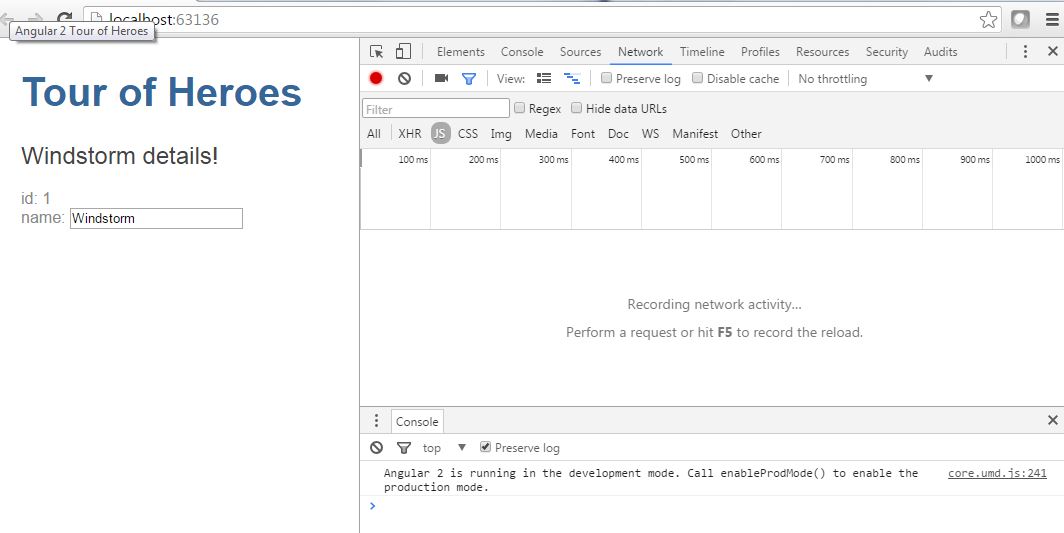 如果我运行我的应用程序-我得到错误,我在这篇文章中提到(当我按F12)。https://stackoverflow.com/questions/38044718/angularjs-2-in-visual-studio-2013-not-translpiling