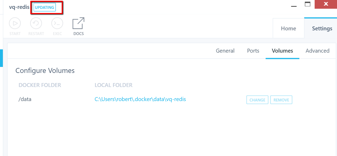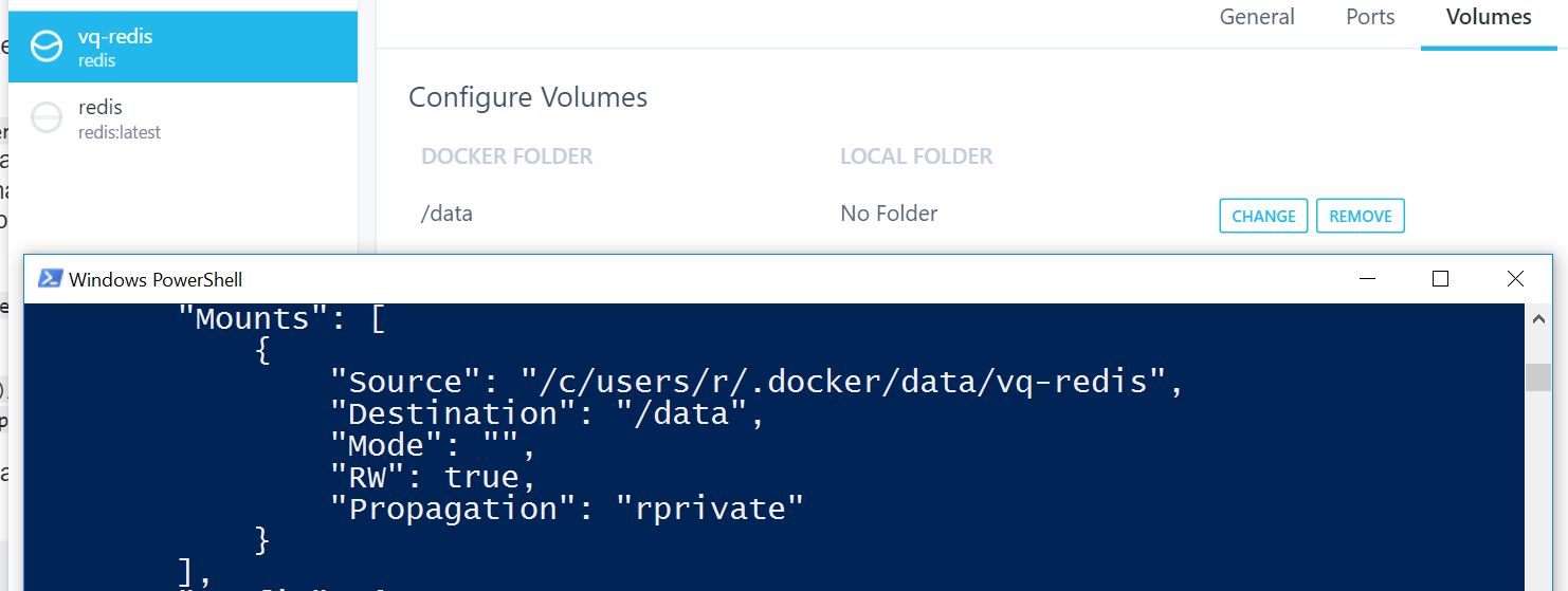 - /c/users/r/.docker/data/redis/data:/data如果我添加或删除volumes定义并不重要,因为它总是在docker inspect中显示类似于