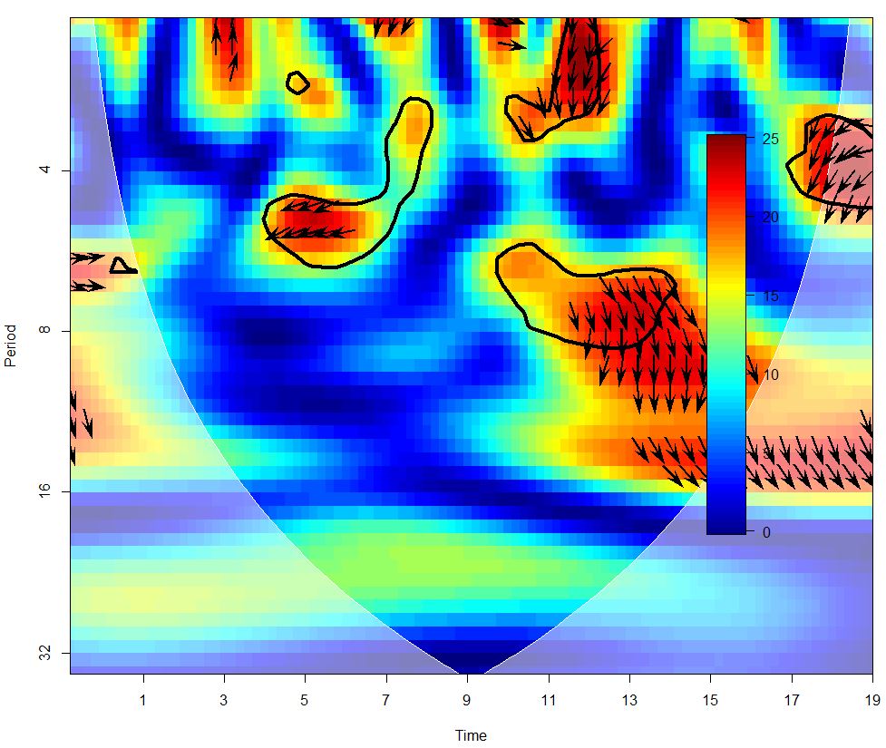 plot(wtc.t1t2, plot.cb = TRUE, plot.phase = TRUE,xaxt='n')