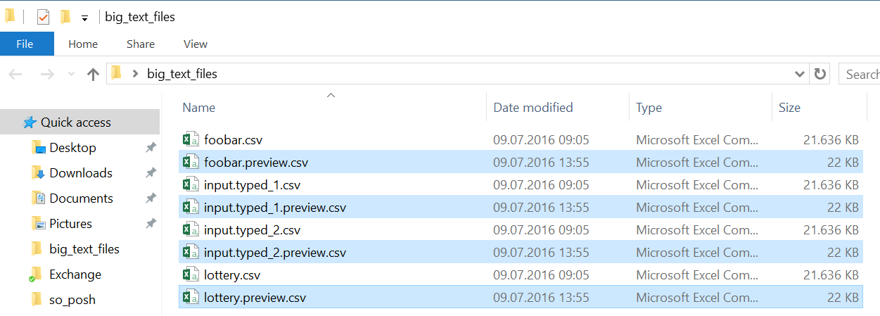 例如,在文件夹中使用一些大的CSV文件(但可以是任何文本文件)执行下面的PoSh管道会创建相当小的预览文件。