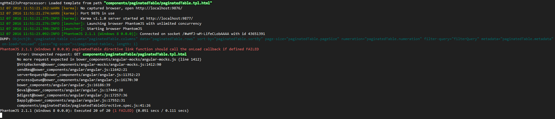 });这将返回一个意外的get请求错误,这个错误应该通过导入karma.conf.js上配置的ng-html2js生成的“karma.conf.js”来解决。